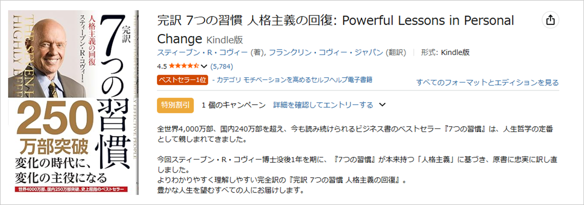 📘『7つの習慣』(スティーブン・R・コヴィー)です。