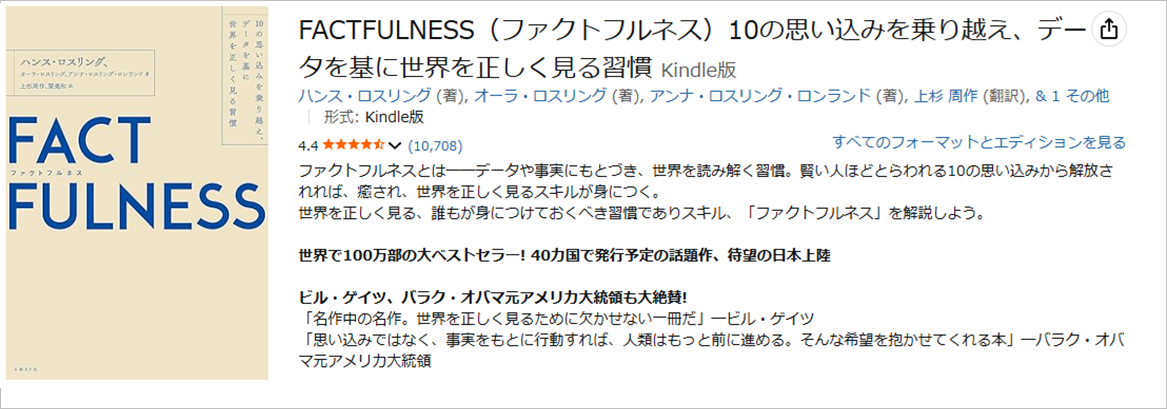 📘『FACTFULNESS(ファクトフルネス)』(ハンス・ロスリング)です。