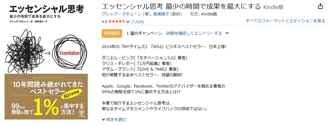 📘『エッセンシャル思考』(グレッグ・マキューン)です。