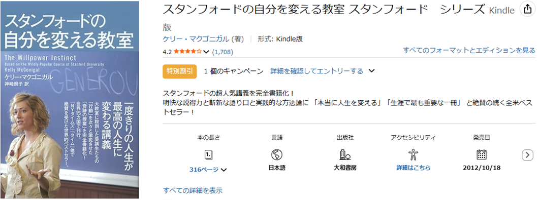 📘『スタンフォードの自分を変える教室』(ケリー・マクゴニガル) です。