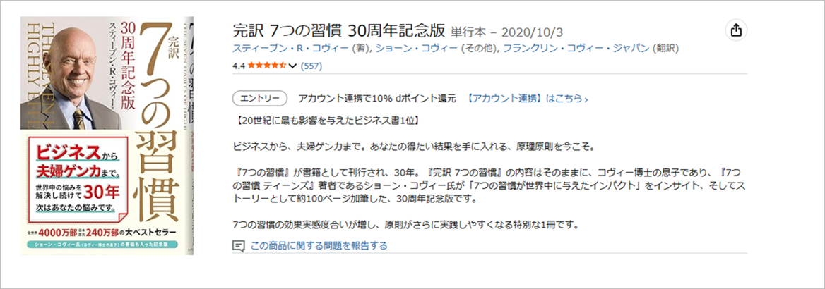 📘7つの習慣(スティーブン・R・コヴィー ) です。